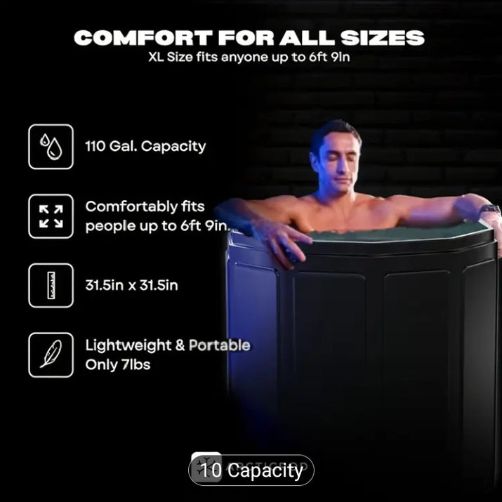 Experience unparalleled comfort with our spacious ice bath, expertly crafted for ultimate relaxation and recovery after your workouts, all from the convenience of home.