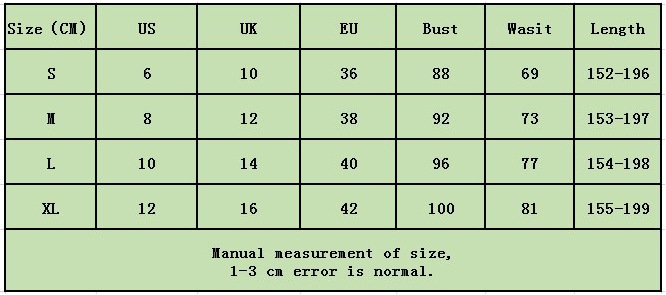 1. Asian sizes are 1 to 2 sizes smaller than European and American people. Choose the larger size if your size between two sizes. Please allow 2-3cm differences due to manual measurement. 2. Please check the size chart carefully before you buy the item, if you don't know how to choose size, please contact our customer service. 3.As you know, the different computers display colors differently, the color of the actual item may vary slightly from the following images.